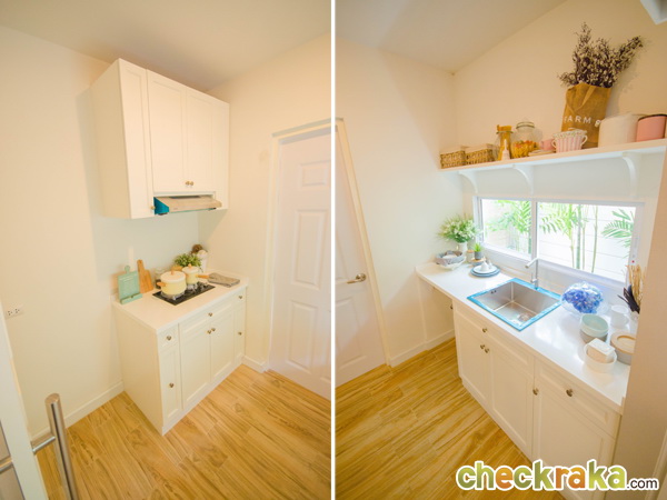 ห้องครัว เป็นพื้นที่โล่ง มีหน้าต่างบานเลื่อน และประตูออกไปลานซักล้าง