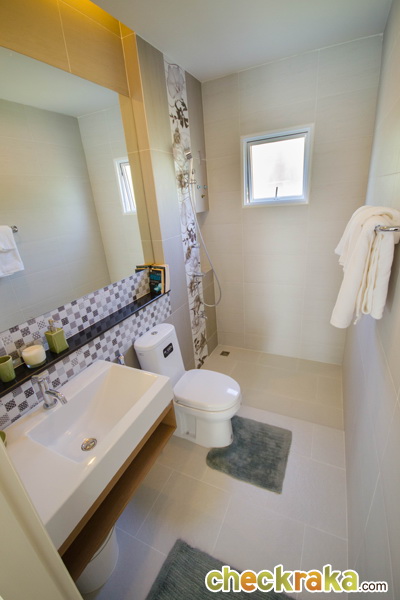 มีห้องน้ำ และห้องอาบน้ำให้ครบ มีหน้าต่างบานกระทุ้งเปิดระบายอากาศได้ค่ะ