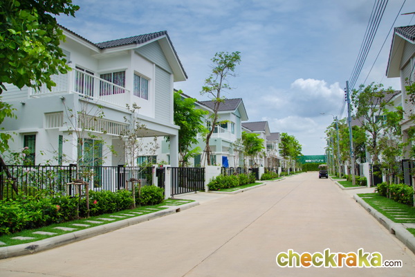 - ตัวโครงการโดยรวมและส่วนกลาง - เนื้อที่โครงการมีทั้งหมด 62-2-51.4 ไร่ จำนวนบ้านทั้งหมด 272 หลัง เป็นบ้านเดี่ยว 2 ชั้น 2 แบบ รั้วรอบโครงการสูง 3 เมตร สำหรับบ้านไหนที่มีที่ดินติดกับบุคคลภายนอกจะมีรั้วรอบโครงการบวกเพิ่มอีก 2 เมตร (เท่ากับ 5 เมตร) ส่วนกลางของโครงการนั้นเรียกได้ว่าครบครันทุกการใช้งานจริงๆ ค่ะ มีทั้งคลับเฮ้าส์ ฟิตเนสในห้องขนาด 7 x 5 เมตร มีเครื่องเล่น 4 เครื่อง พร้อมชุดดัมเบล และชุดโยคะ, สระว่ายน้ำระบบเกลือ ขนาด 20.30 x 14.20 เมตร ลึก 1.3 เมตร แยกสระเด็กขนาด 4.6 x 5.7 เมตร ลึก 0.6 เมตร, สวนสาธารณะ และสวนหย่อม 3 จุดรอบโครงการ ขนาด 1-2-29.1 ไร่ และจุดที่เป็นพื้นที่สาธารณะส่วนใหญ่โครงการจะลงต้นไม้ ปูหญ้า เพื่อเพิ่มพื้นที่สีเขียวไว้ให้ ในส่วนของระบบรักษาความปลอดภัย มีป้อมยามให้ 2 จุด พร้อมประตูเลื่อนเหล็ก และกล้อง CCTV ถนนของโครงการเป็นถนนคอนกรีต ถนนหลักมีความกว้าง 12 เมตร และถนนซอยกว้าง 9 เมตร