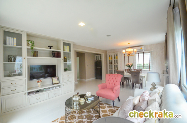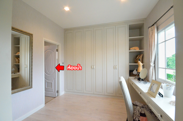 บ้านที่ขายให้ลูกค้าจริงๆ จะเป็นห้องเปล่าโล่งๆ ไม่ได้ติดตั้งตู้มาให้เต็มแบบนี้ พื้นที่ส่วนนี้มีขนาดใหญ่