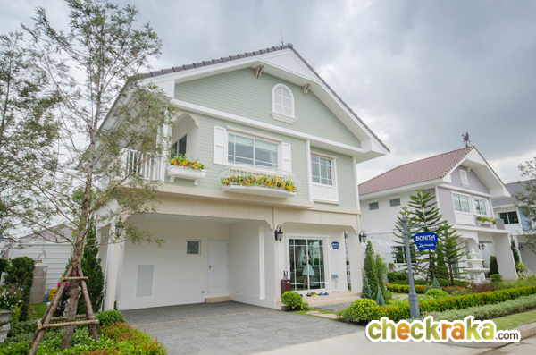 - แบบบ้านและวัสดุ - แบบบ้าน และ Lay Out ภายในโครงการมีให้เลือกถึง 3 แบบ ตัวฟังก์ชั่นบ้านสามารถรองรับสมาชิกในครอบครัวได้หลายคนเพราะบ้านทั้ง 3 แบบมีห้องนอนรองรับ 3 ห้องนอนเท่ากัน แตกต่างกันที่ขนาดของห้อง และจำนวนห้องน้ำเพราะบ้านที่ไซส์เล็กสุดของที่นี่มีห้องน้ำให้ 2 ห้อง สำหรับพื้นที่ด้านข้างบ้านมีให้พอสมควร ยิ่งหากบ้านหลังไหน ได้พื้นที่มากหน่อย แทบจะสร้างเรือนรับรองอีกหลังได้เลย จุดเด่นหลักๆ คือฟังก์ชั่นบ้านที่ให้มาครบ พร้อมกับดีไซน์ ทันสมัยแบบยุโรป ทำให้บ้านดูอบอุ่นน่ารัก วัสดุภายในบ้าน เช่น สุขภัณฑ์ใช้ Bathroom Design และ Cotto พื้นชั้นล่างแกรนิตโต้ 60x60 ซ.ม. พื้นชั้นบนเป็นลามิเนตหนา 8 มม. บานประตูภายในเป็นไม้ HDF ประตูห้องน้ำกับโรงจอดรถเป็น UPVC กรอบประตู หน้าต่างอลูมิเนียม Powder Coat สีขาว และกระจกเขียวตัดแสงทั้งหลัง โดยรวมแล้ววัสดุและเกรดของวัสดุที่จัดมาให้อยู่ในเกณฑ์ที่ดี