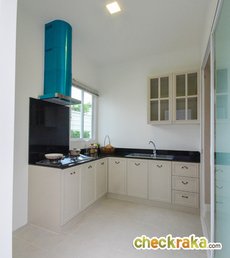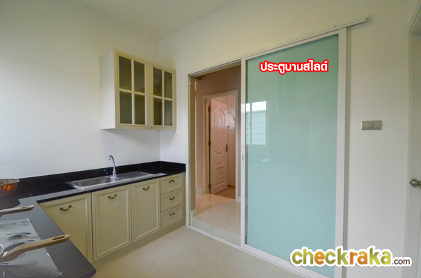 เยื้องกับห้องน้ำคือห้องครัว ครัวที่นี่เป็นครัวแยก มีประตูบานสไลด์ปิดให้ชัดเจน ลดปัญหาเรื่องกลิ่น ควันไปได้