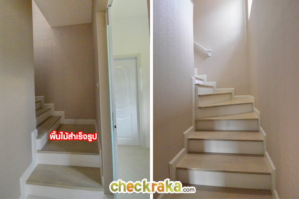ระหว่างห้องน้ำกับห้องครัว คือบันไดทางขึ้นชั้น 2 ซึ่งเป็นบันไดโครงสร้างเหล็ก มีชานพักให้ 2 จุดทั้ง
