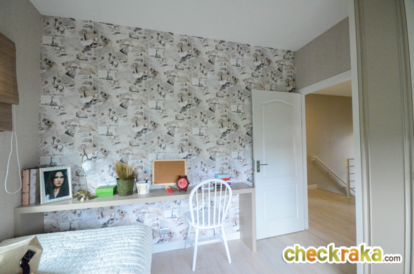 พื้นที่ปลายเตียงจะทำเป็นชั้นวางของน่ารักๆ แบบนี้ก็ได้ หรือวางโต๊ะอ่านหนังสือก็ยังพอมีพื้นที่เหลือให้วางได้