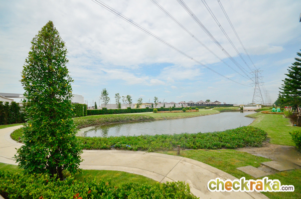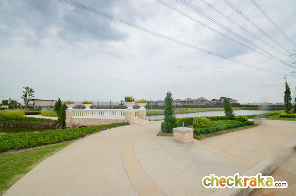 ด้านหน้าโครงการทั้งสองฝั่ง พร้อมทั้งสนามหญ้าสีเขียว และทางเดินเล่น