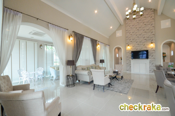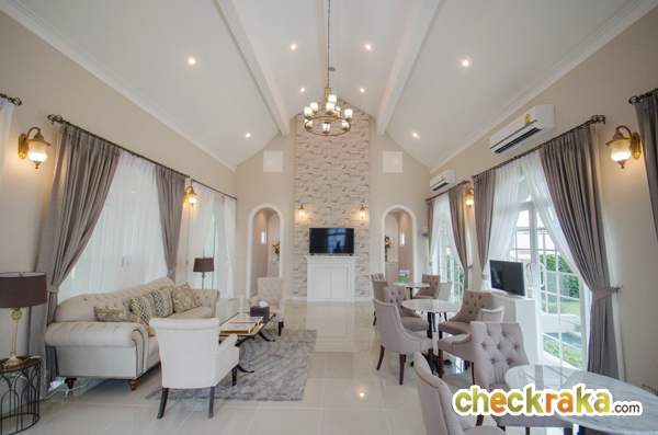 เพดานสูงโปร่ง เหมาะเป็นสถานที่รับรอง รับแขก โทนสีสบายตาดูหรูหราและอบอุ่นไปในตัว