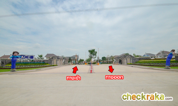 ถนนทางเข้าโครงการขนาดใหญ่มาก ซุ้มประตูแบบเปิดโล่งตามสไตล์ยุโรป