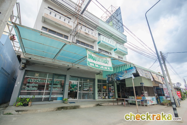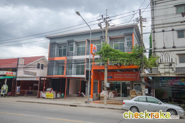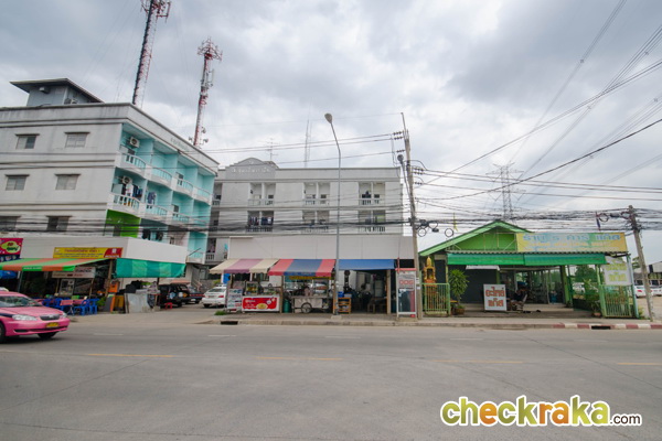 ฝั่งตรงข้ามเป็นแมนชั่น ที่ใต้ตึกเปิดเป็นร้านค้า ร้านอาหาร