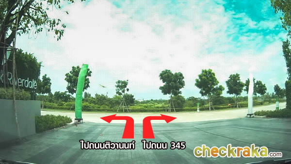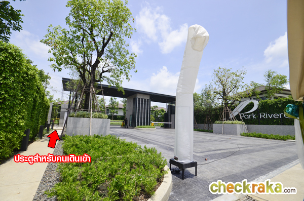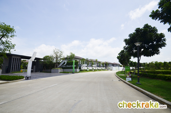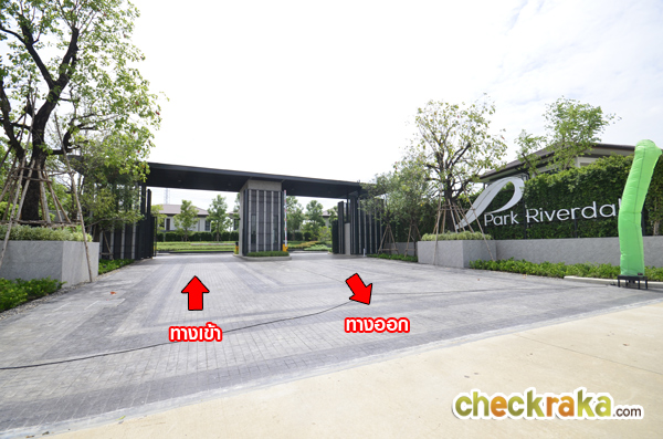 จากถนนโครงการ ฝั่งซ้ายมือ คือประตูทางเข้าโครงการ พาร์ค ริเวอร์เดล ส่วนฝั่งตรงข้ามจะเป็นโครงการบ้าน