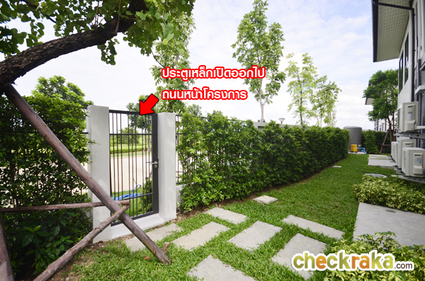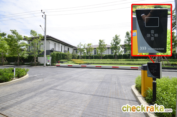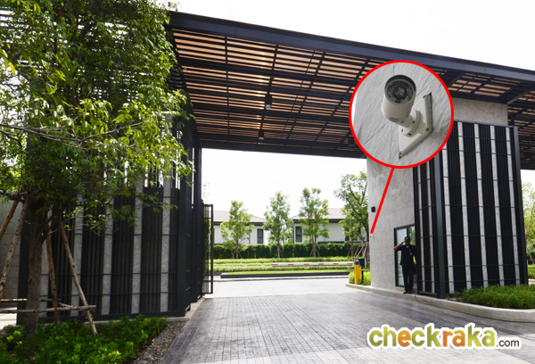 ที่ซุ้มประตูมี รปภ. ไม้กั้นกระดก CCTV ที่สแกนคีย์การ์ดเข้า-ออกโครงการ และประตูบานเลื่อนเหล็กขนาดใหญ่