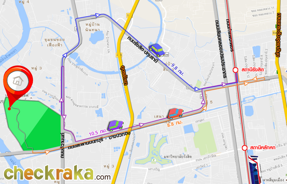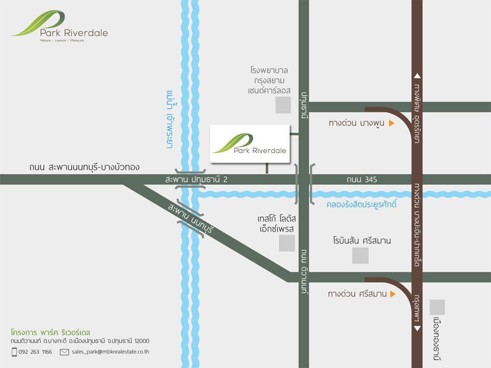 - ที่ตั้งโครงการ ถนนติวานนท์ ตำบลบางกะดี อำเภอเมืองปทุมธานี จังหวัดปทุมธานี 12000