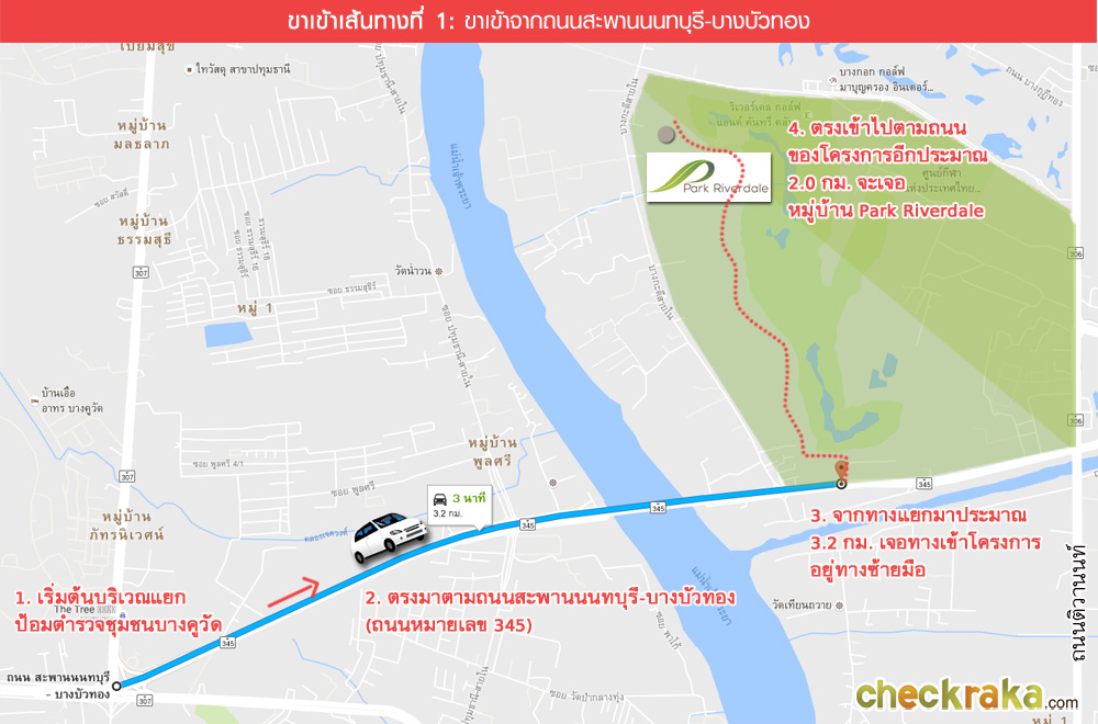 เริ่มต้นบนถนนทางหลวงแผ่นดินหมายเลข 345 หรือถนนสะพานนนทบุรี - บางบัวทอง