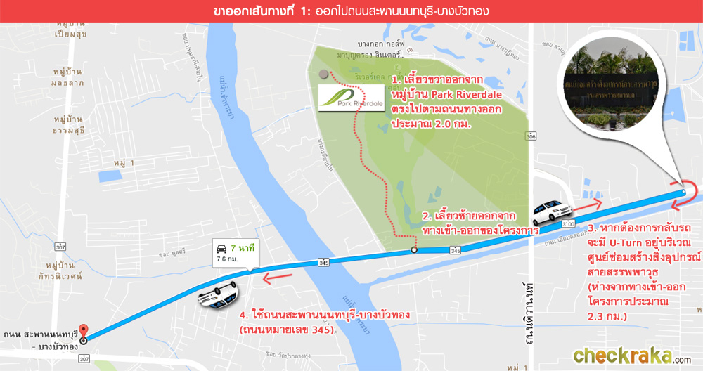 - สภาพแวดล้อมรอบโครงการ - โครงการ พาร์ค ริเวอร์เดล ทางเข้า-ออกตั้งอยู่ติดกับถนนติวานนท์ และถนนทางหลวงแผ่นดินหมายเลข 345 สำหรับตัวโครงการหมู่บ้านนั้นตั้งอยู่ในสนามกอล์ฟ Riverdale Golf Club สภาพแวดล้อมรอบๆ โครงการเป็นบรรยากาศของสนามกอล์ฟ รายล้อมไปด้วยต้นไม้ และพื้นที่สีเขียวกว้างขวางเรียกได้ว่าร่มรื่นมากทีเดียวค่ะ ภายใน Riverdale Golf Club มี Club สำหรับรองรับผู้ที่มาเล่นกอล์ฟ ทางฝั่งถนนทางหลวงหมายเลข 345 จะมีห้างร้านอยู่เยอะพอสมควรลากยาวไปถึงแยกปู่โพธิ์จะมีตลาดปู่โพธฺ์ ในส่วนของถนนติวานนท์ที่เป็นถนนใหญ่ 6 เลนจะมีในส่วนของร้านอาหาร ร้านค้า และเซเว่นอีเลฟเว่นคอยบริการอยู่ค่อนข้างเยอะทีเดียวค่ะ