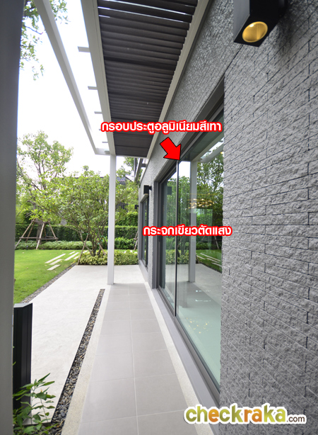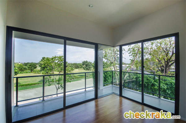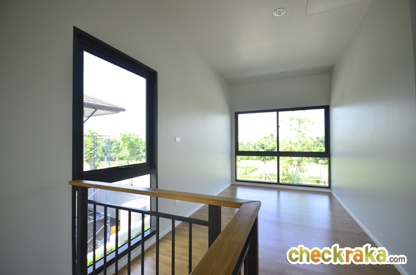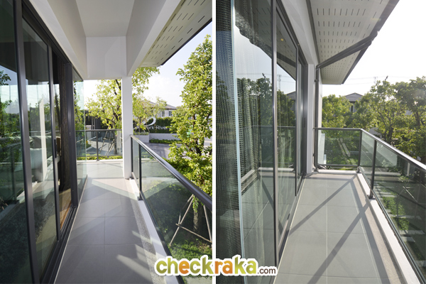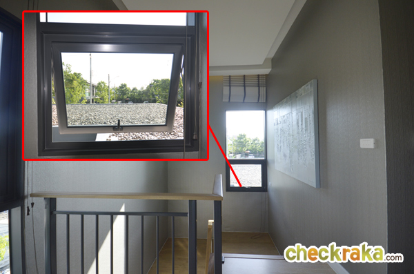 มีหน้าต่างบานเลื่อนและกระจกบาน fix ที่สำคัญบ้านที่นี่ติดตั้งระแนงบังตามาให้ ข้อดีคือ จากในห้อง