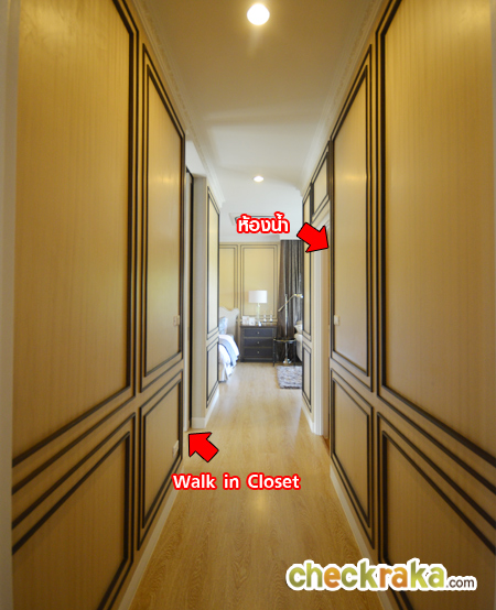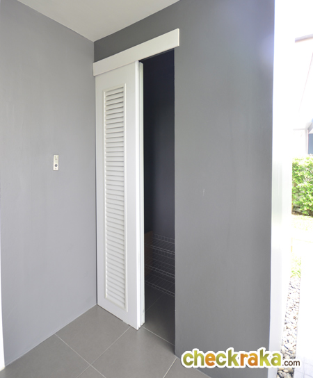 มาชม Walk in Closet กันก่อนนะคะ ประตูไม้บานเลื่อนที่เห็นนี้ Built-in ขึ้นมานะคะ บ้านที่ส่งมอบลูกค้าจะไม่มีประตูบานนี้ จะมองเห็นเป็นห้องโล่งๆ สำหรับทำ Walk in Closet ภายใน มีหน้าต่างบานกระทุ้งให้