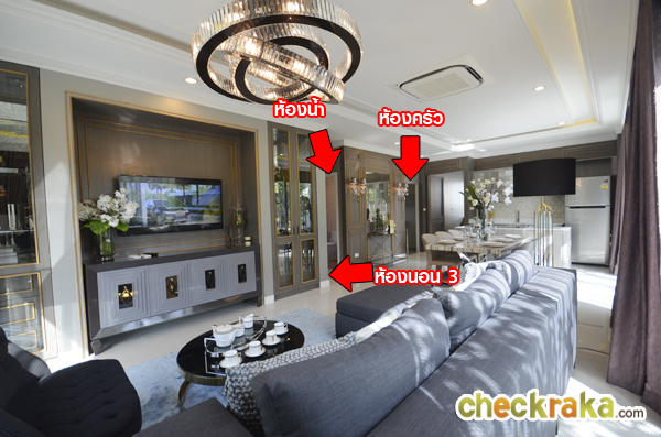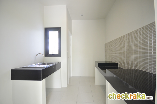 ห้องครัวจะอยู่ถัดจากห้องน้ำเมื่อสักครู่ บ้านตัวอย่างจะตกแต่งมาแบบนี้