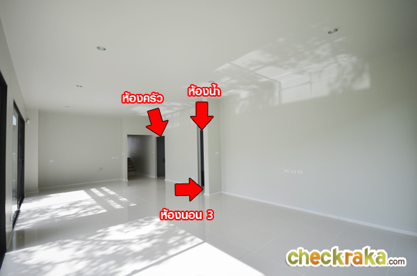บ้านเปล่าจะปูกระเบื้องสีขาวแนวยาวเรียบเป็นพื้นระดับเดียวกัน