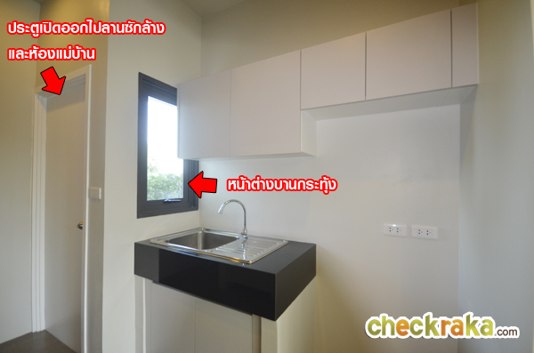 ฝั่งนี้ก็เหมือนกันค่ะ ให้เคาน์เตอร์ประตูด้านหลังเป็นประตูสำเร็จรูป สามารถเปิดออกไปลานซักล้างหลังบ้านได้ค่ะ