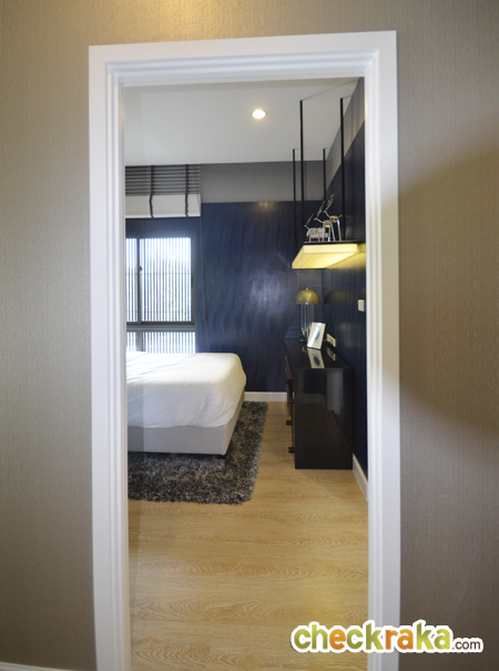 พื้นที่ข้างเตียง และปลายเตียงยังมีเหลือพอให้จัดวางเฟอร์นิเจอร์ได้เหมือนห้องที่ผ่านมา