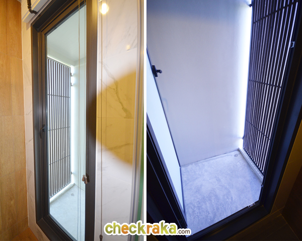 จากรูปที่แล้วจะมองเห็นความยาวของระเบียง สามารถออกไปยืนชมวิวหรือวางกระถางปลูกต้นไม้ก็ได้