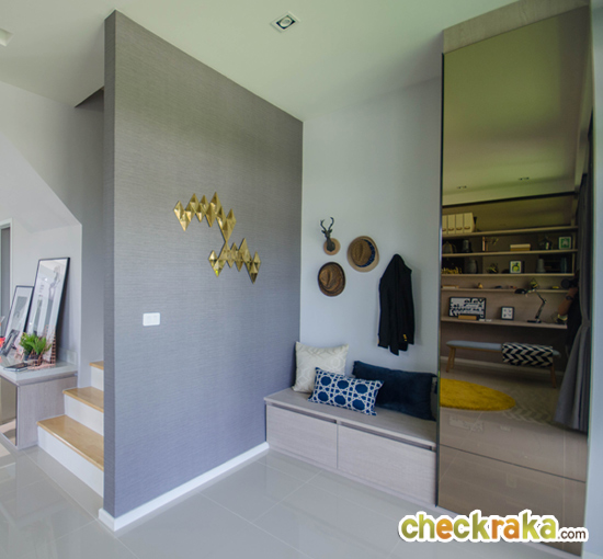 สำหรับแบบบ้านนี้ชั้นบนได้ตกแต่งในส่วนของชั้นวางของไว้ตรงทางเดินบันได
