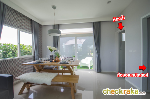 กับโต๊ะรับประทานอาหาร และท้ายสุดคือประตูเปิดออกไปครัว/ลานซักล้าง