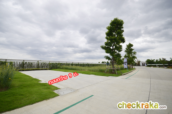 ผ่านซุ้มประตูเข้ามาไม่ไกลจะเห็นพื้นที่ว่างอยู่ฝั่งซ้ายมือ ทางโครงการทำถนนไว้เรียบร้อย จะใช้เป็นพื้นที่ขาย