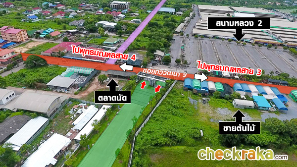 จากปากซอยทวีวัฒนา 9 ให้ตรงเข้าไปอีก 850 เมตร