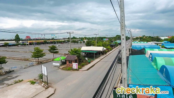 ภาพมุมสูงแสดงให้เห็นซุ้มประตูทางเข้า และทางออก ก่อนที่จะเข้าไปภายในตัวโครงการ