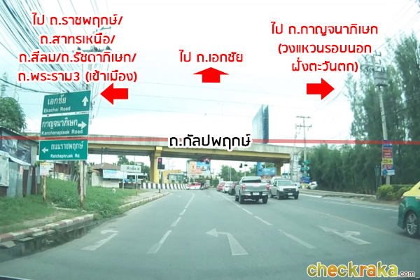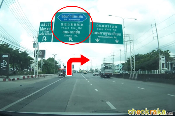 ถ้าเลี้ยวขวาจะไปออกถนนกาญจนาภิเษก (วงแหวนรอบนอกฝั่งตะวันตก)