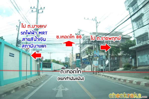 จากนั้นจะถึงแยกกำนันแม้นบริเวณถนนเทอดไท ถ้าตรงไปจะเป็นซอยเทอดไท 86