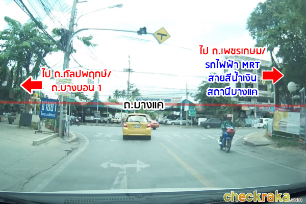 จากนั้นจะถึงสามแยกซึ่งตัดกับถนนบางแคค่ะ ถ้าเลี้ยวซ้ายจะไปออกถนนกัลปพฤกษ์ และถนนบางบอน 1 ได้