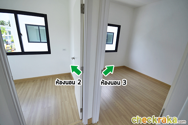 ห้องนอน 2 และ ห้องนอน 3 อยู่ติดกัน ประตูห้องนอนเป็นประตูไม้อัดสีขาวทุกห้องค่ะ