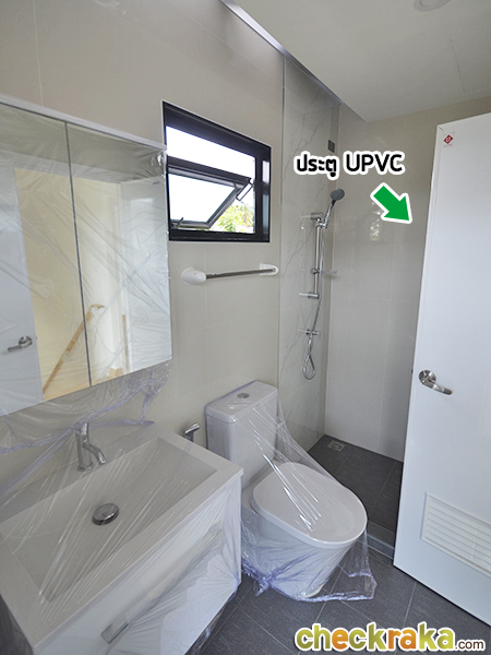 ห้องน้ำเหมือนห้องตัวอย่างเลย แยกส่วนเปียกส่วนแห้ง มีช่องแสงด้านบนและหน้าต่างบานกระทุ้ง ประตู UPVC