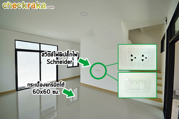 เข้ามาภายในบ้านค่ะ ไฟแบบ LED ส่วนพื้นปูด้วยกระเบื้องแกรนิตโต้ 60x60 ซม.