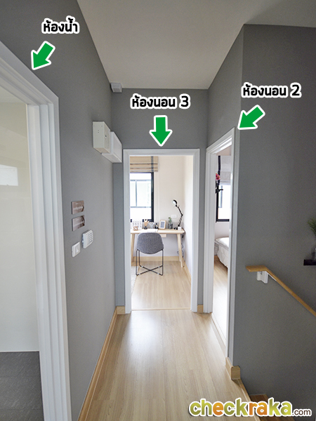 ขึ้นมาชั้น 2 ค่ะ จะเป็นห้องนอน 3 ห้อง และห้องน้ำ 1 ห้อง (มุมมองจาก Master Bedroom)