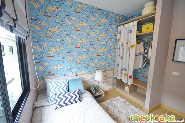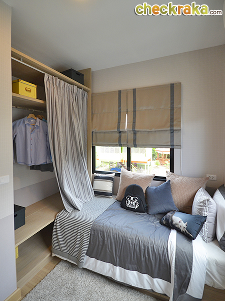 ห้องนอน 2 เป็นห้องที่มีพื้นที่รองลงมา มีไอเดียตู้เสื้อผ้าเท่ๆ จาก IKEA