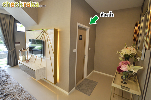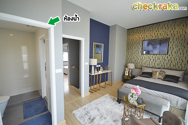 Master Bedroom ค่ะ มีห้องน้ำในตัว แต่มีประตูแชร์กับห้องอื่นๆ ด้านนอก เหมือนกับแบบบ้านมาตรฐาน