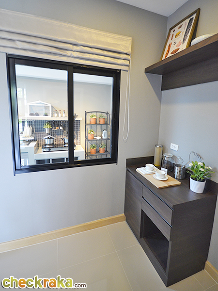พื้นที่ Pantry ไม่ได้เน้นประกอบอาหารค่ะ อาจวางเคาน์เตอร์ไว้สักหน่อย เปลี่ยนเป็นมุมคาเฟ่ชงกาแฟเล็กๆ