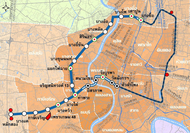 แผนที่รถไฟฟ้าสายสีน้ำเงิน (คาดว่าจะเปิดให้บริการได้ในช่วงปี 2562)