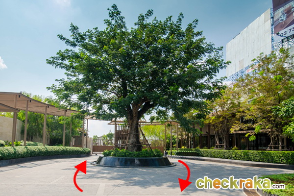 ด้านข้างของซุ้มประตู เป็น Sale Gallery มีต้นไม้สีเขียวล้อมรอบ