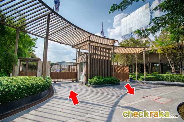 ซุ้มประตูทางเข้า-ออกหลักของโครงการมีขนาดไม่ใหญ่มาก ดีไซน์เรียบๆ ไม่มีหลังคากันแดดแบบจริงจัง
