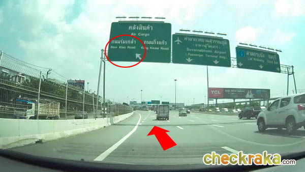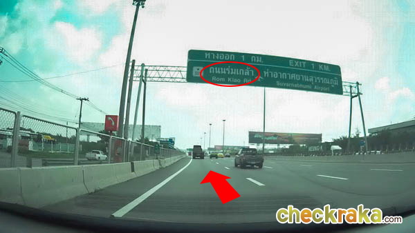ทางออกถนนร่มเกล้าออกทางซ้ายมือ