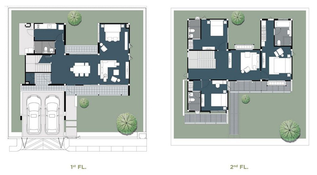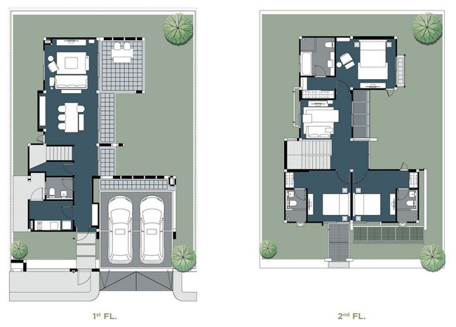 1. แบบบ้าน FESPA - บ้านเดี่ยว 2 ชั้น ขนาดที่ดินเริ่มที่ 55.7 ตร.ว. ขนาดพื้นที่ใช้สอย 190 ตร.ม. 3 ห้องนอน 4 ห้องน้ำ สวนนั่งเล่น 2 ห้องนั่งเล่น 1 ส่วนรับประทานอาหาร 1 ห้องครัว ที่จอดรถ 2 คัน มีจำนวน 43 หลัง ขนาดความกว้าง 12.70 เมตร ขนาดความยาว 17.90 เมตร