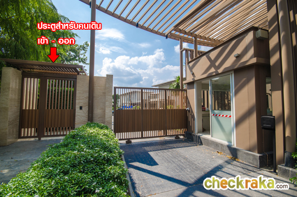 ซุ้มประตูมี รปภ. CCTV ที่สแกนคีย์การ์ดเข้า-ออกโครงการ และประตูบานเลื่อนเหล็ก