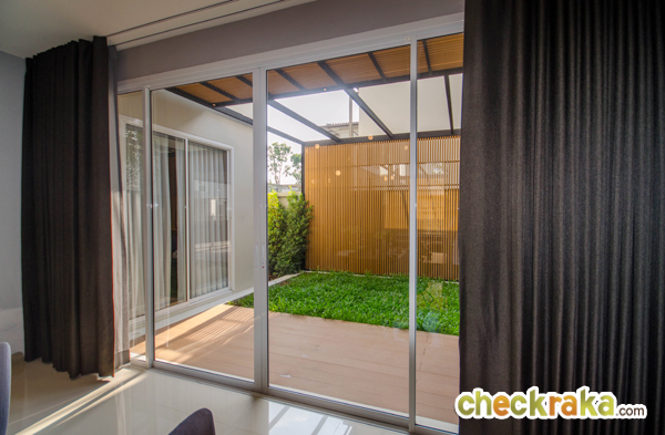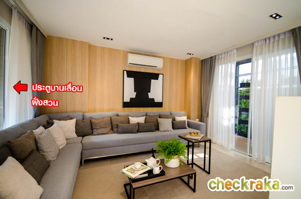 ประตูบานเลื่อนสามารถเปิดออกไปลานจอดรถ และสวนข้างบ้านได้ค่ะ