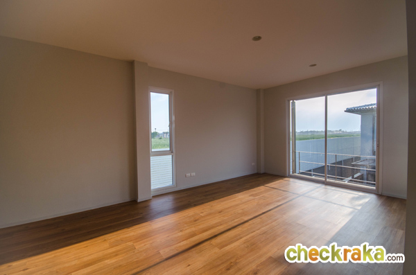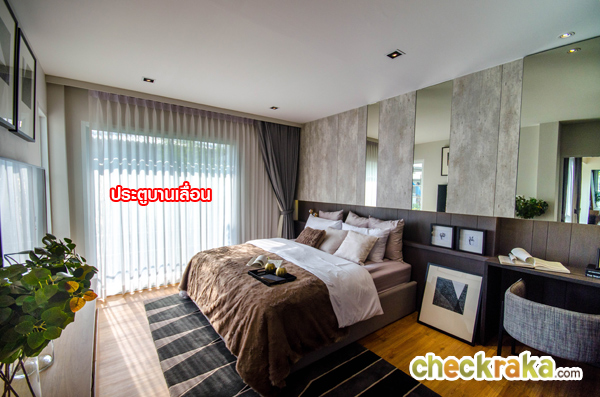ห้องนอน 3 มีหน้าต่างบานเลื่อนขนาดใหญ่ ภายในห้องมีขนาดพอเหมาะ มีพื้นที่ให้จัดวางของได้ครบ