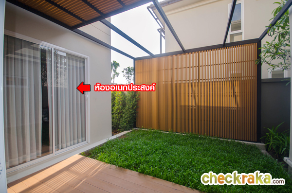 พื้นที่สวนส่วนหลังสุดจะมีประตูเปิดเข้าบ้านได้เหมือนกันค่ะ