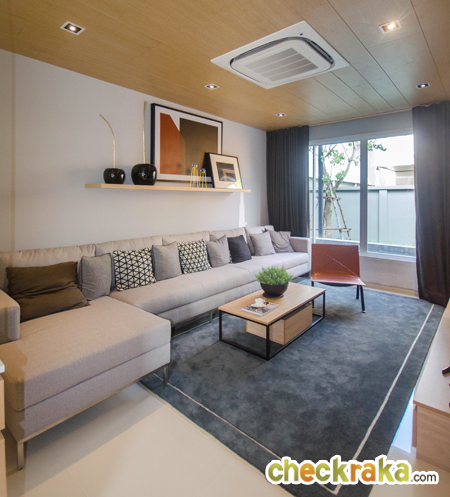 ถ้าเปิดประตูจากสวนเมื่อสักครู่เข้ามาจะเป็นส่วนพักผ่อนหลังบ้าน จัดวางโซฟาขนาดใหญ่