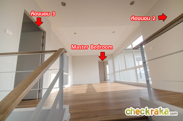 ฝั่งขวาของบันไดจะเป็นโถงชั้น 2 และ Master Bedroom